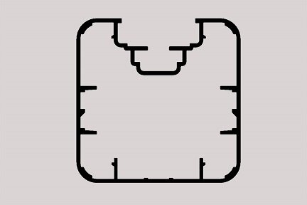 Perfil cuadrado de aluminio de 80 x 80 mm con bordes redondeados, extremadamente rígido por un perfil interno múltiple y doble ranura