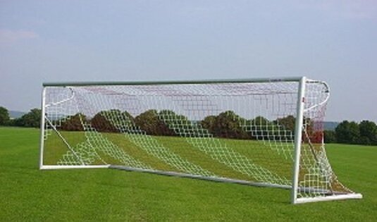 Juego de Porterias para fútbol de dimensiones oficiales de acuerdo a EN 748, modelo independiente portátil con base al suelo. Hecho de perfiles estables de acero reforzado, sección oval de 120x100 mm. Uniones de las esquinas reforzadas. Suministrado con base de aluminio con puntos de conexión para ruedas.