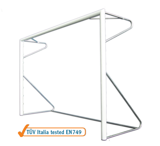 Juego de porterías de fútbol sala redonda de aluminio sección de 80 mm, dimensiones 300x200 cm, Anclajes incluidos.