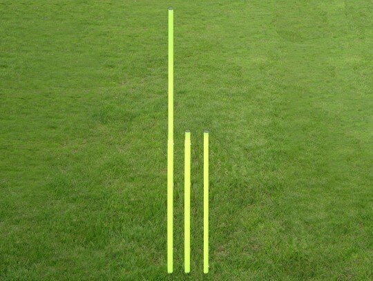 Los palos de slalom son 2 productos en uno: o 2 palos de slalom con 85 cm de altura (1 varilla de ø 30 mm, 1 barra de ø 25 mm). Los dos polos de slalom se pueden interconectar para formar un poste de slalom grande con aproximadamente 170 cm de longitud. Dependiendo de la forma de ejercicio, ya sea grande o la se utilizan dos pequeños palos de slalom. La ventaja sobre palos de slalom telescópico que se puede utilizar 1 o 2 pequeñas varillas. El polo de slalom es una ayuda importante para el entrenamiento de fútbol u otros deportes en los que la agilidad y la velocidad juega un papel.